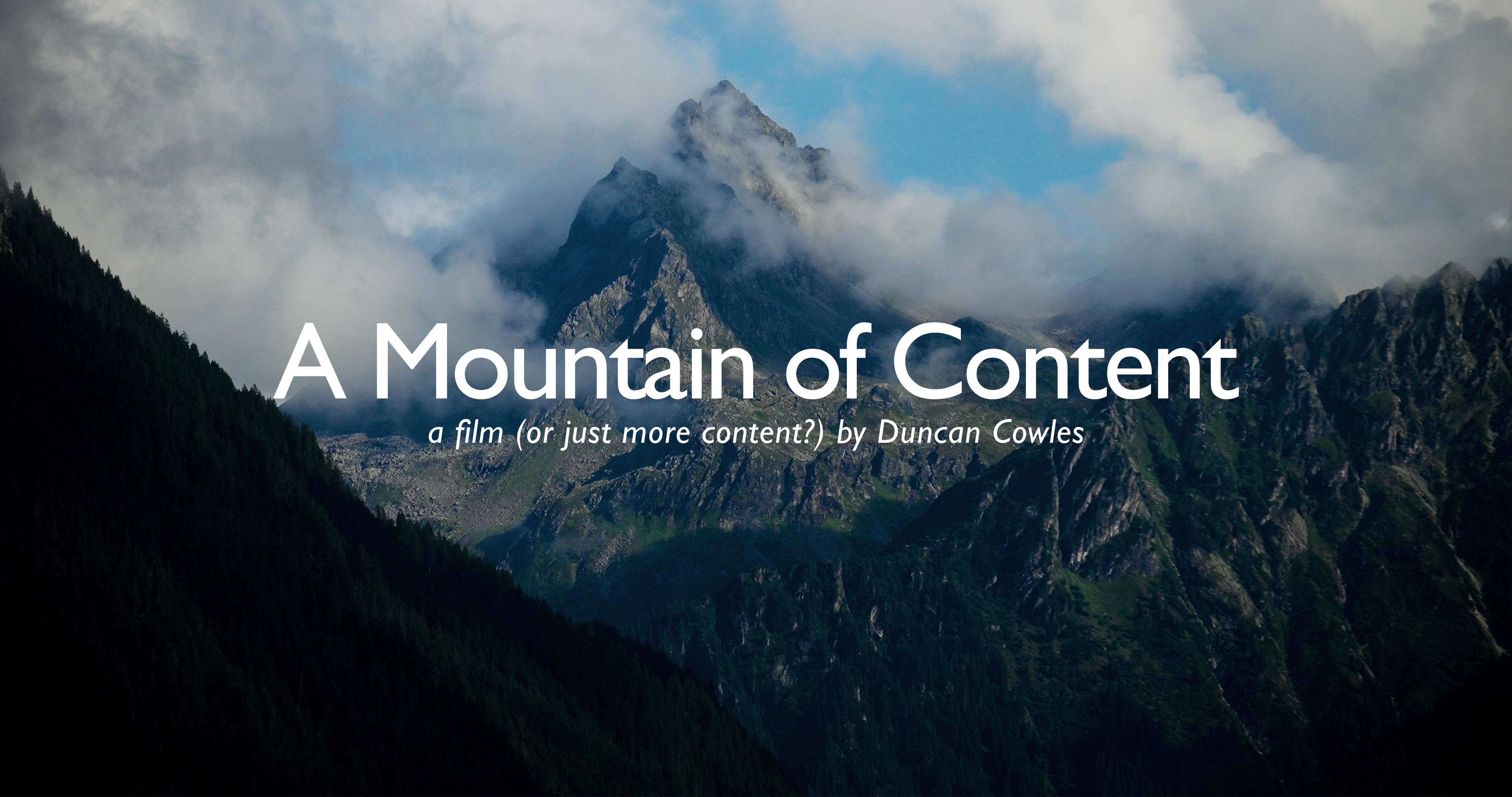 A filmmaker in the Austrian alps relentlessly films a mountain of content, until they themselves are content. A content creator? Or a creator, far from content?